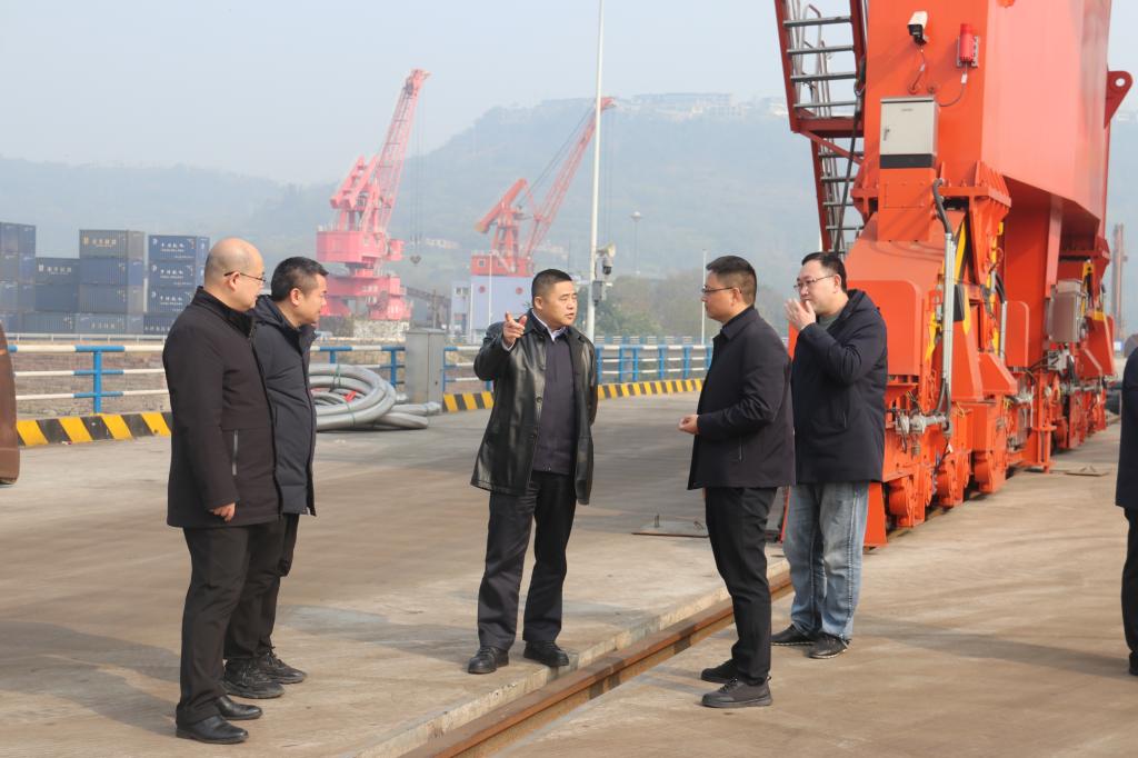 在珞璜公司,敖辉一行深入码头前沿、木材堆场等生产作业现场实地查看,详细了解了目前港区生产安全、环保安全、设备运行等情况,并就公司生产经营情况进行了深入交流。