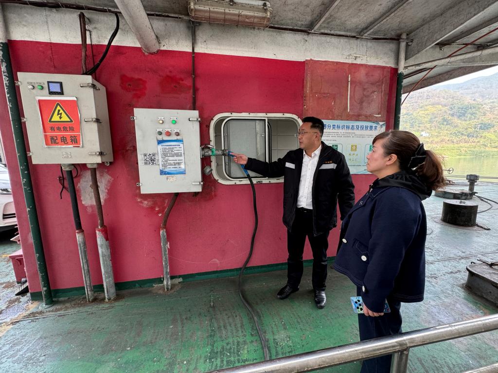 在果园滚装公司,文雨梅对商品车装卸船作业进行了实地查看,随后检查了趸船系泊设施设备及船舶污染物接收设施、岸电设备,并详细询问靠港船舶生活垃圾、生活污水、油污水接收处置及岸电使用整体情况。文雨梅还与趸船值班船员进行了亲切交流,仔细了解船员的生活和工作情况,叮嘱船员要时刻绷紧安全弦,根据水流动向,及时排除险情。