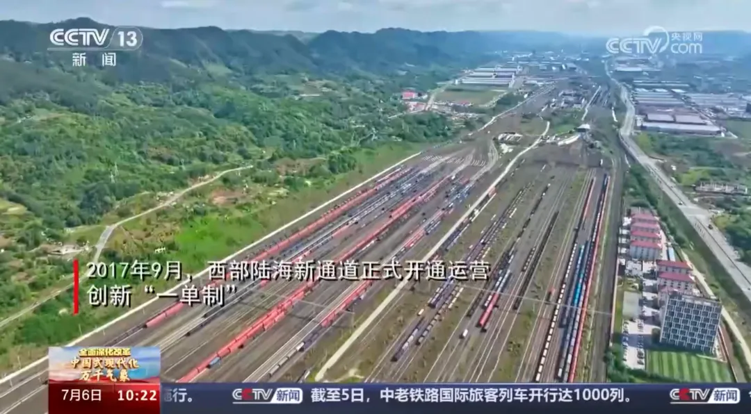 2017年9月,西部陆海新通道正式开通运营,以重庆为运营中心,与海关携手创新一单制运输通关模式,打通铁公海联合运输壁垒,通过广西、云南等沿海沿边口岸通达世界各地。