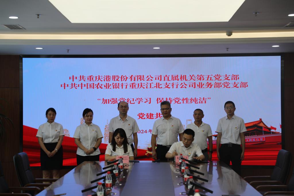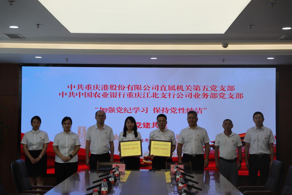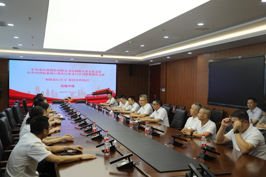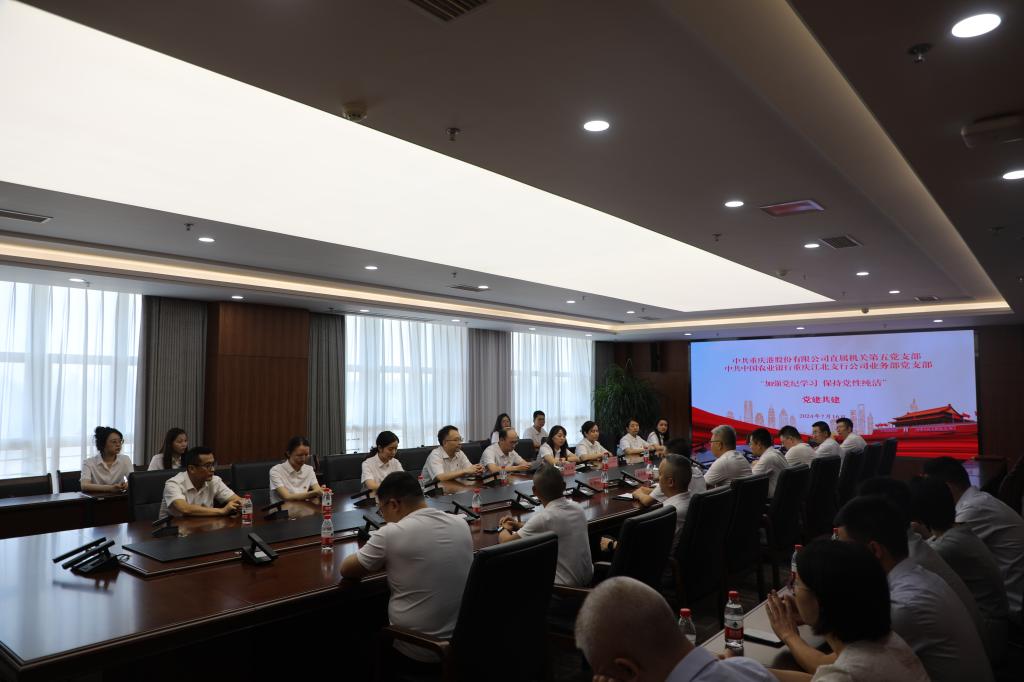 为进一步深学笃用习近平新时代中国特色社会主义思想,切实将中央党纪学习教育工作往深里走、往实里走、往心里走,推动全面从严治党向纵深发展,构建“资源共享、优势互补、共同提高”的党建新格局。7月16日下午,中共sunbet申搏直属机关第五党支部与中共中国农业银行重庆江北支行公司业务部党支部共同开展党建共建主题党日活动。