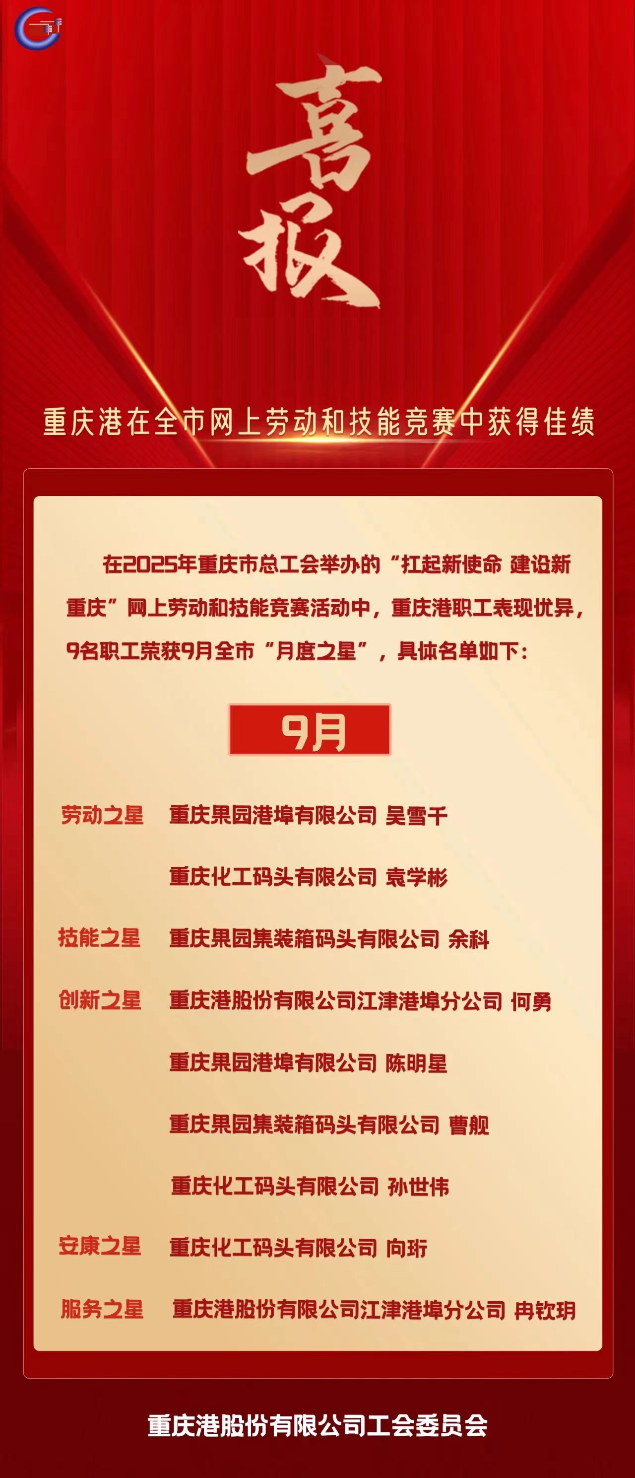 喜报!sunbet申搏所属果园港埠公司、果园集装箱公司在市交建工会2025年“安康杯”劳动...
