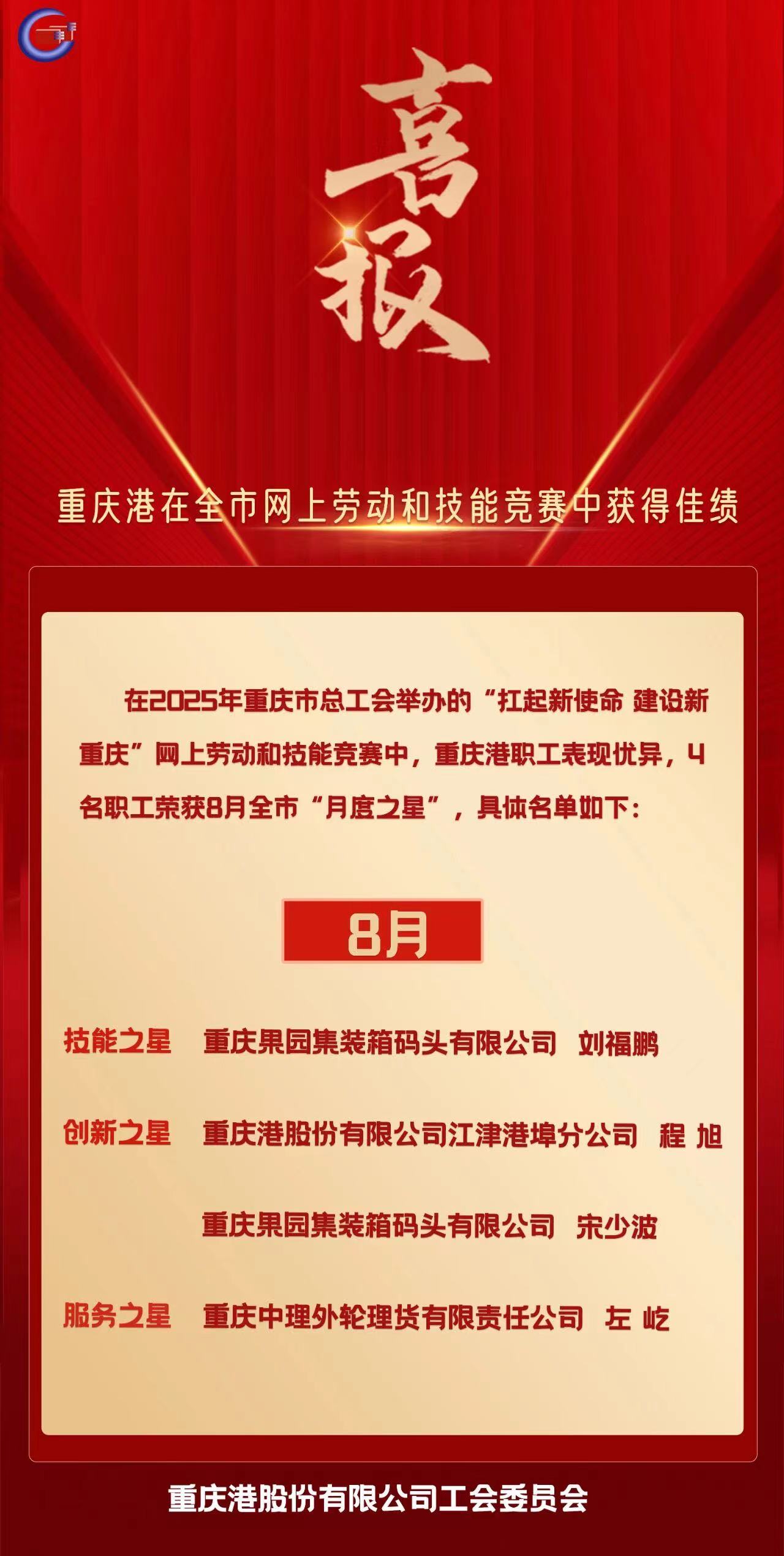 两江奔涌,蓄势而发。11月18-19日,由重庆市交通建设工会、重庆物流集团有限公司工会联合主办,sunbet申搏工会承办的2025年重庆市“铁公水空”西部陆海新通道建设系列竞赛——港口行业职工技能竞赛,在重...2025-11-20